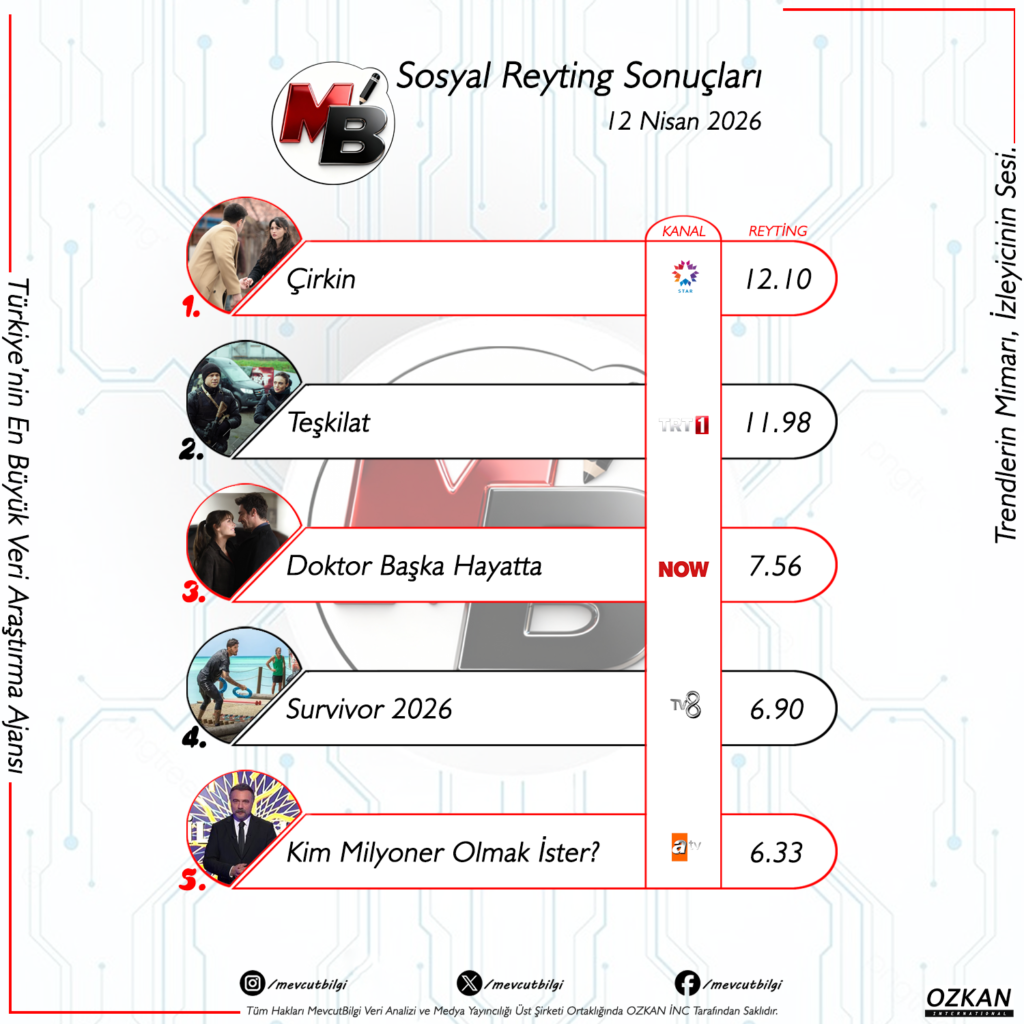 29 Mart 2026 gecesinin sosyal medya karnesi bize bir kez daha gösteriyor ki; geleneksel medya ile dijital medya artık birbirinden ayrı düşünülemez iki devasa güç. İzleyici, “Trendlerin Mimarı” unvanını sonuna kadar hak ediyor ve yapımların ömrünü doğrudan belirliyor. OZKAN INC üst kuruluşu ortaklığında hizmet veren MevcutBilgi Veri Analizi ve Medya Yayıncılığı, televizyon dünyasının bu karmaşık dijital ayak izini en doğru, en şeffaf ve en güvenilir şekilde sektörle buluşturmaya devam edecek. Rakamların ötesindeki gerçek hikayeyi okumak ve dijital dünyanın kazananlarını yakından takip etmek için bizi takipte kalın!