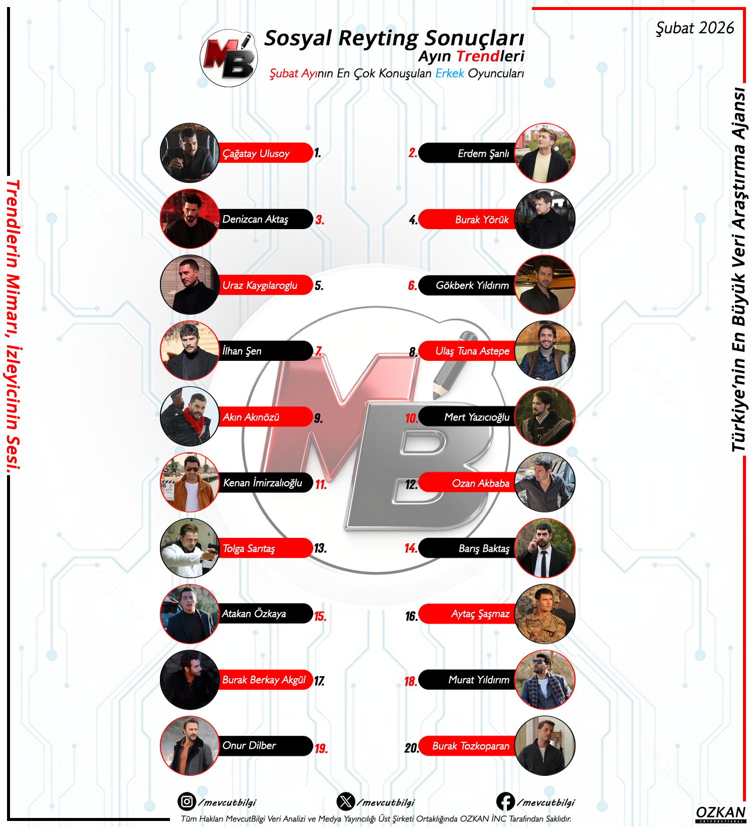 Şubat 2026 Sosyal Reyting Analizi: Ayın En Çok Konuşulan Erkek Oyuncuları ve Dijitalin Jönleri Televizyon dünyasında “başarı” kavramının tanımı son yıllarda büyük bir evrim geçirdi. Eskiden sadece ertesi sabah açıklanan