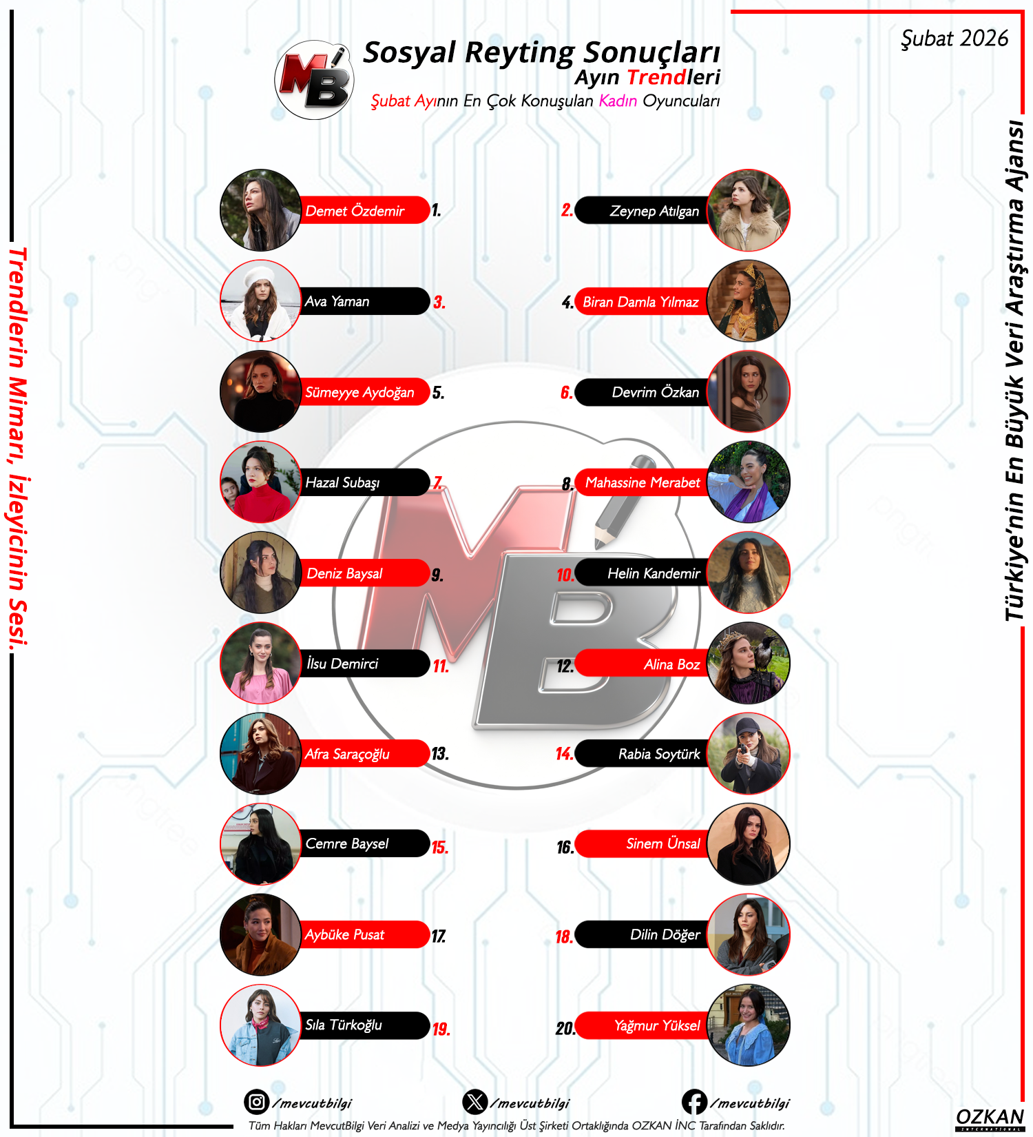 Şubat 2026 Sosyal Reyting Analizi: Ayın En Çok Konuşulan Kadın Oyuncuları ve Dijital Ekranın Kraliçeleri Televizyon yayıncılığında geleneksel reyting ölçümlemelerinin tek otorite olduğu dönemler artık tamamen geride kaldı. İçinde bulunduğumuz