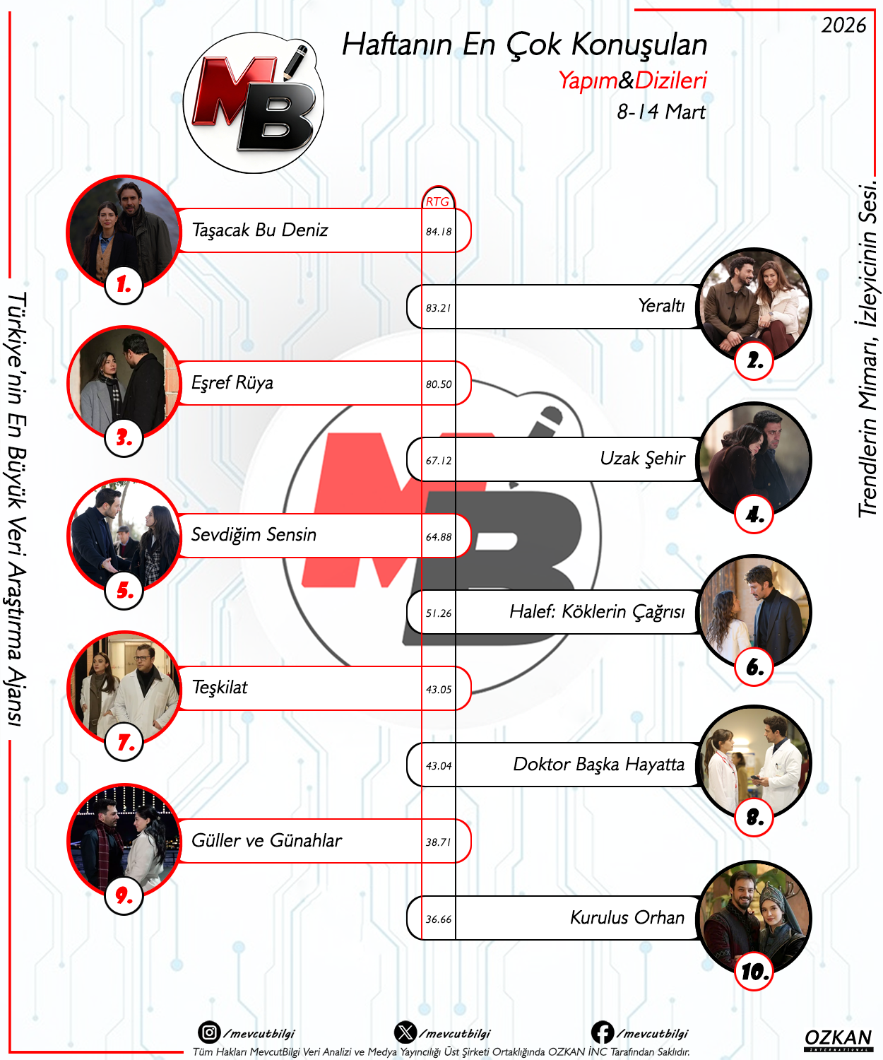 8-14 Mart 2026 Sosyal Medya Reyting Analizi: Zirvedeki Diziler ve Haftanın Kazananları Televizyon dünyasında artık başarı sadece ertesi sabah açıklanan geleneksel reyting cihazlarının verileriyle ölçülmüyor. Günümüzde bir yapımın asıl gücünü,